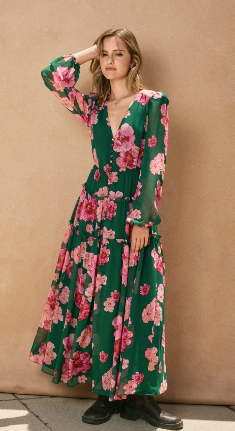 Jordan Floral Maxi Dress in Emerald- FINAL SALE