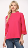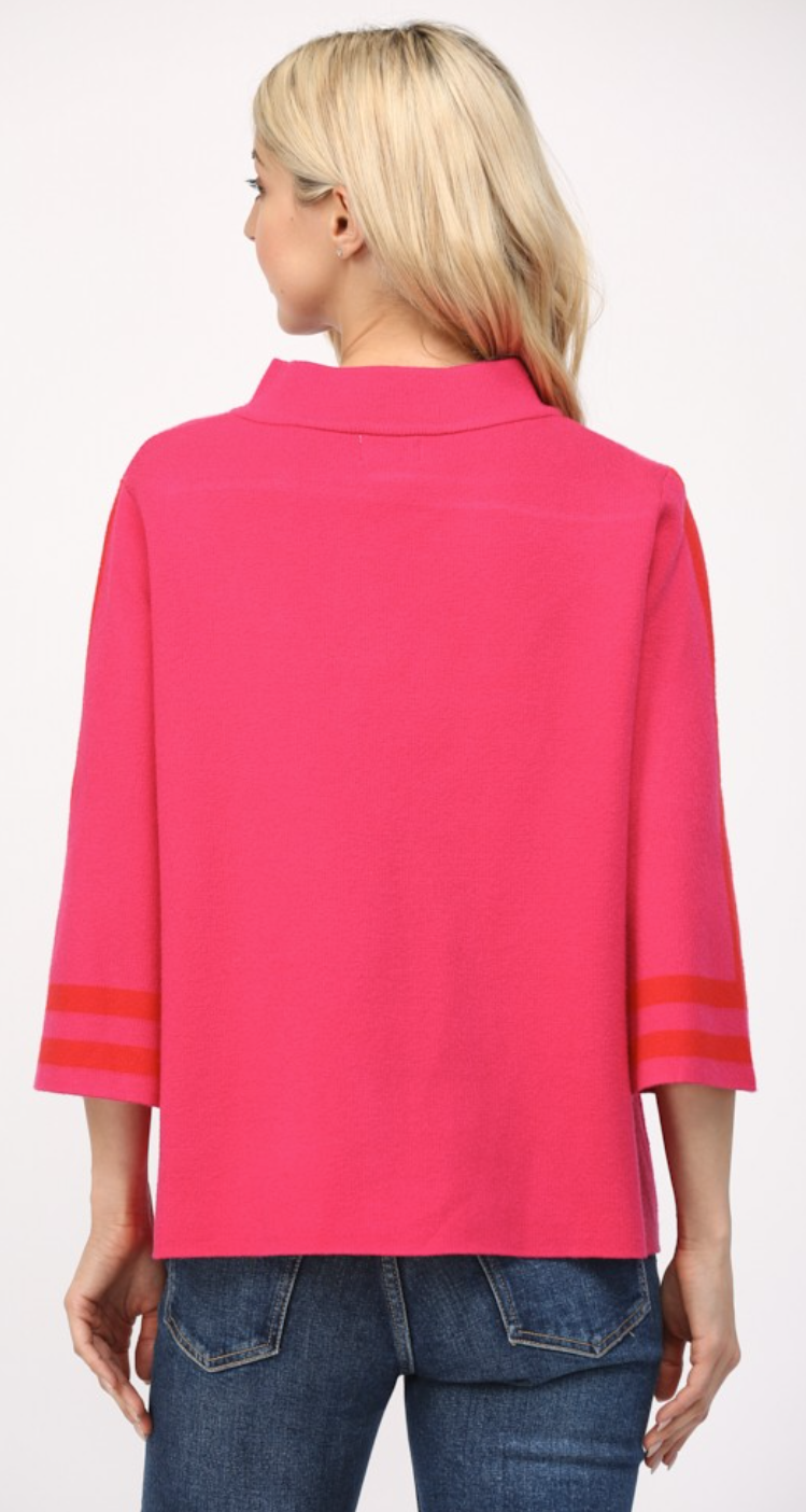 Mock Neck with Stripe Detail in Fuchsia