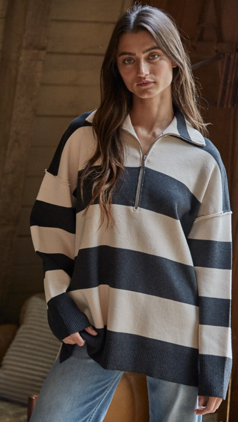 Ysa Striped Pullover in Charcoal and Cream